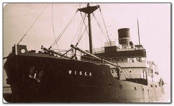 14 listopada 1933 roku: Dryfujący trawler HORST WESSEL widziany z pokładu s/s KOŚCIUSZKO. Przy burcie trawlera spuszczona szalupa.