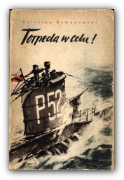| Okładki 1. i 8. wydania wspomnień Bolesława Romanowskiego zatytułowanych "Torpeda w celu" (lata 1958 i 1985). |