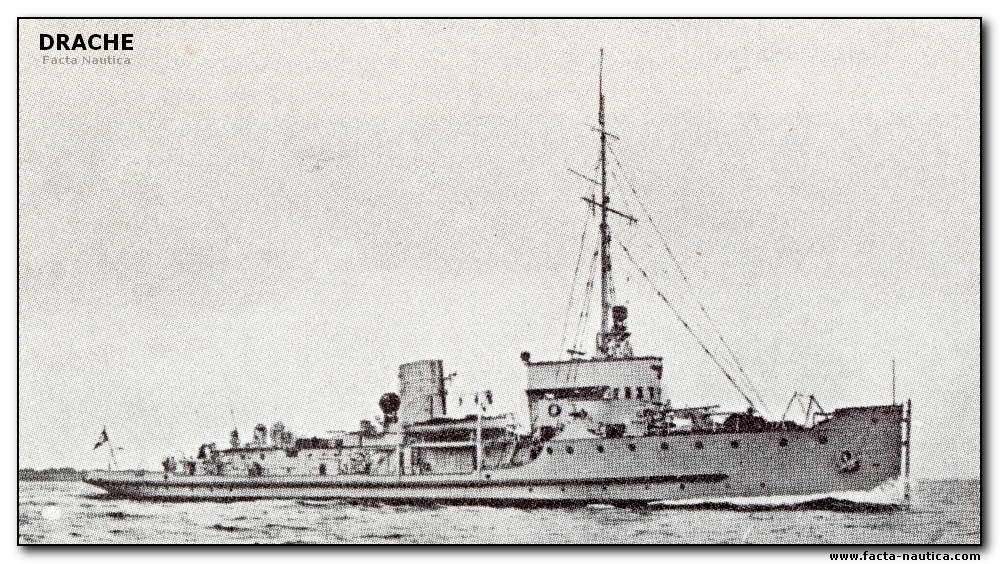 --------DRACHE w okresie I wojny światowej wykorzystywany był jako okręt patrolowy (Jane's Fighting Ships 1919 klasyfikował go jako kanonierkę (gunboat, Kanonenboot). Po kapitulacji Niemiec pozostał w składzie niemieckiej marynarki wojennej (Reichsmarine). Początkowo, w latach 1919-21, brał udział w służbie trałowej na Bałtyku jako Führer der Minensuchboote in der Ostsee, potem zaś wrócił do roli okrętu szkolnego i tendra artyleryjskiego.
