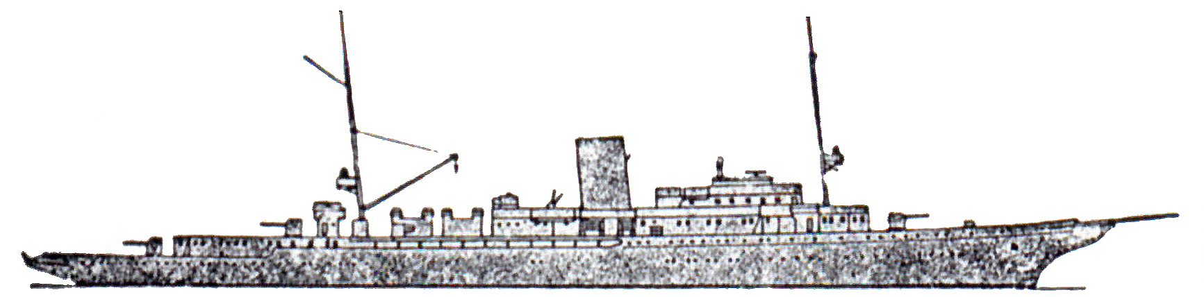Uzbrojenie: 3 pojedyncze działa 127 mm, 2 działa przeciwlotnicze 37 mm, 4 przeciwlotnicze karabiny maszynowe.