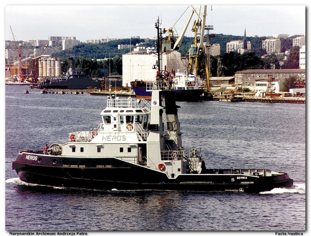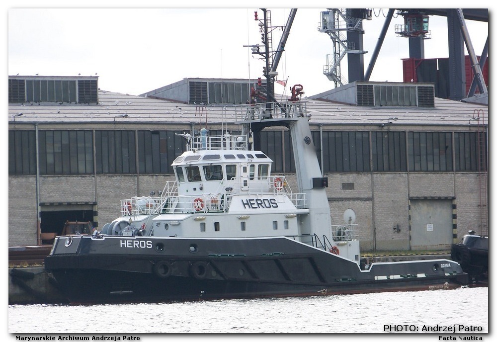 --------Holownik tylnopędnikowy HEROS typu H-3000/II, należący do Przedsiębiorstwa Usług Żeglugowych i Portowych Gdynia Sp. z o.o., powstał w Stoczni Remontowej "Nauta" S.A. w Gdyni w roku 1998 (nr budowy0446). Jego charakterystyka, na podstawie Polskiego Rejestru Statków 2013 i in. przedstawia się następująco: pojemność 365 BRT i 109 NRT; nośność 174 DWT; długość 28,83 m; prędkość 12 węzłów; długość całkowita 30,23 m; szerokość 9,5 m; wysokość boczna 4,92 m; zanurzenie 4,42 m; napęd - 2 silniki spalinowe 4-suwowe SD16V Caterpillar CAT3516TA o mocy 2822 kW (3834 KM), 2 śruby; uciąg na palu 45 (T).