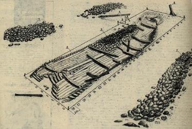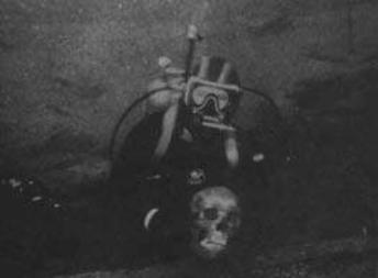 Wrak szwedzkiego okrętu "Solen" odkryty został w październiku 1969 roku przez "Bryzę", jednostkę Polskiego Ratownictwa Okrętowego. Po lewej, ludzka czaszka znaleziona w toku eksploracji (fot. ze strony Sekcji Historyczno-Eksploracyjnej TPS). Po prawej, szkic wraku "Solena" (stan z 10 września 1977 r., wg rysunku Lecha Nowicza).