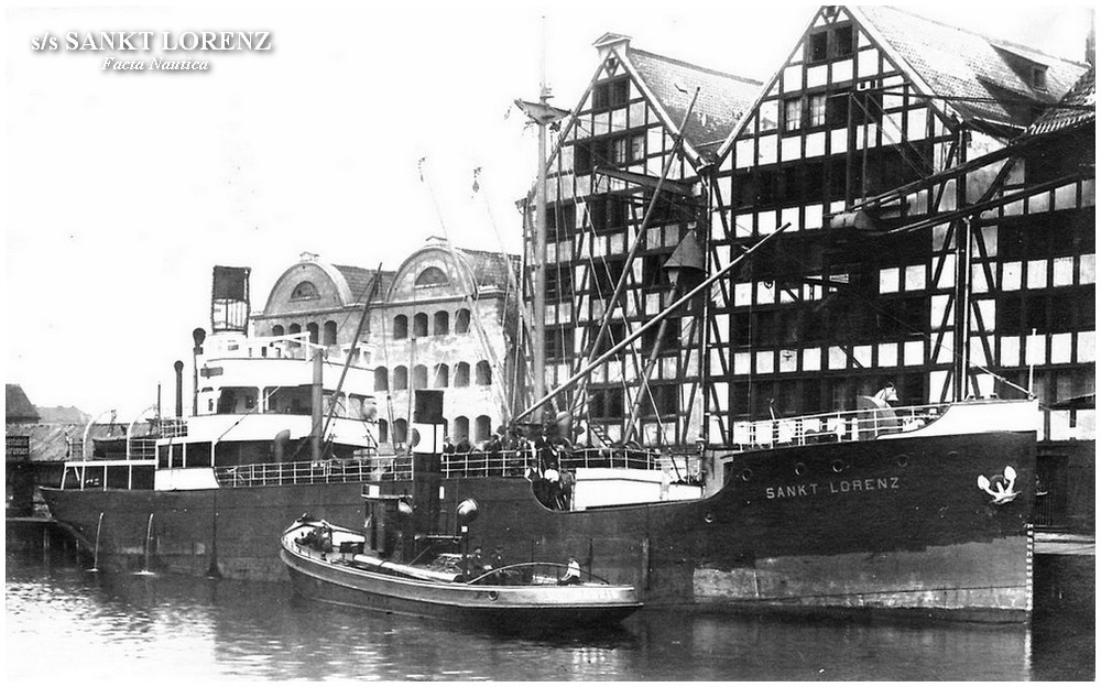 Wpadło mi w ręce stare zdjęcie, pochodzące najprawdopodobniej z lat trzydziestych XX wieku. Odręczny napis na jego odwrocie składa się tylko z jednego słowa - Danzig. Na fotografii tej widać mały parowiec o nazwie SANKT LORENZ, przycumowany przy nabrzeżu i stojący przy nim niewielki holownik, z widocznym na rufie napisem Danzig. Spróbowałem dowiedzieć się czegoś więcej na temat tego statku.