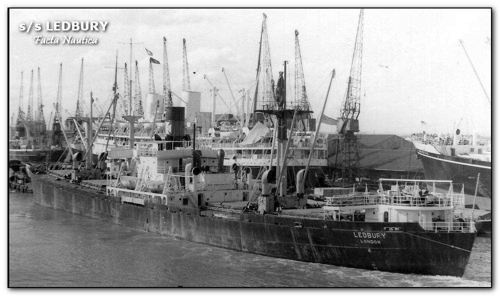 S/s LEDBURY, późniejsza s/s KOPALNIA CZELADŹ, w londyńskich Royal Docks. Autor zdjęcia nieznany. S/s LEDBURY, later s/s KOPALNIA CZELADŹ. London's Royal Docks. Photo by Unknown Author.