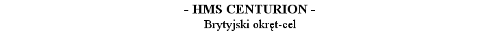 | HMS CENTURION, dziewiąty okręt o tej naazwie w Royal Navy, był pierwotnie jednym z brytyjskich pancerników typu 'KING GEORGE V'. Po podpisaniu przez Wielką Brytanię Traktatu Waszyngtońskiego okręt został zdemobilizowany i rozbrojony. Wkrótce potem zapadła decyzja o przebudowaniu go na nowoczesny, kierowany drogą radiową okręt-cel. Przebudowę jednostki prowadzono od kwietnia 1925 do czerwca 1927 roku. Dzięki grubemu pancerzowi mógł być ostrzeliwany pociskami kalibru do 203 mm. |
