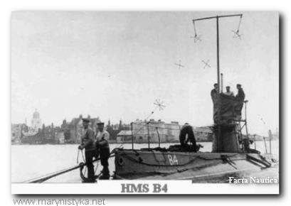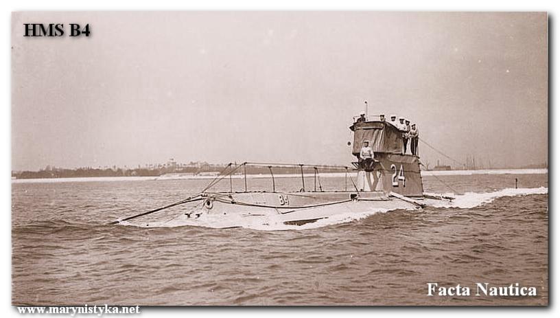 Brytyjski okręt podwodny HMS B4 The British submarine HMS B4. Launched: 14 November 1905. Completed: 28 January 1906. Sold for scrap: April 1919.