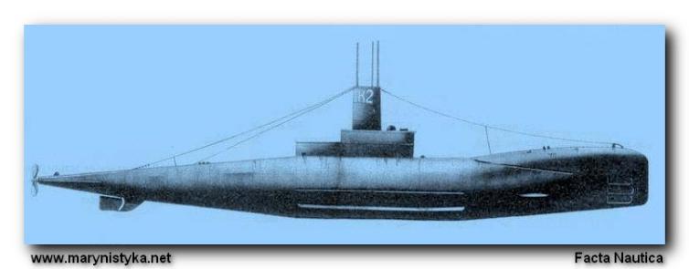 | Widok z boku brytyjskiego okrętu podwodnego typu 'R'. |