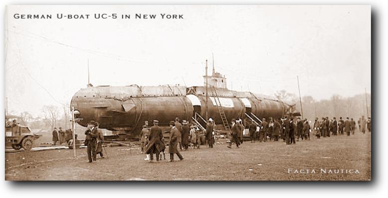reklamę Liberty Bonds. UC-5 dotarł na kontynent
