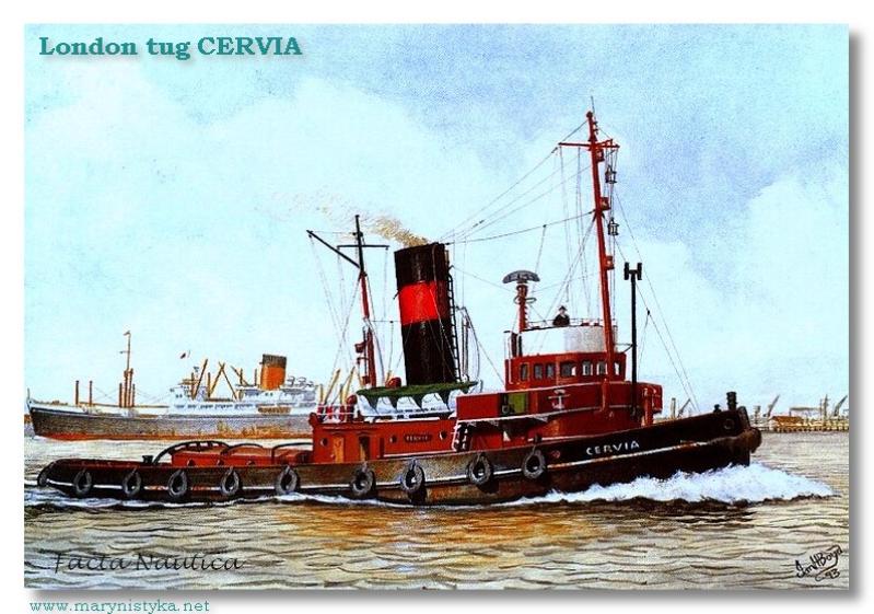 Brytyjski holownik CERVIA, ex EMPIRE RAYMOND. Sygnał rozpoznawczy GDPM. The British tug CERVIA, ex EMPIRE RAYMOND. Built 1945-1946 by Alexander Hall and Co. Ltd., Aberdeen. Call sign GDPM. She is the last sea-going steam tug to survive in UK waters.