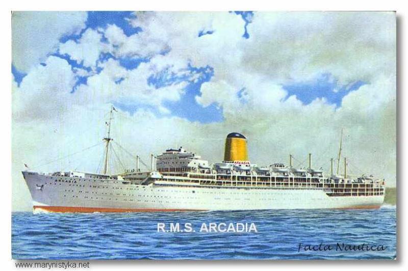 Nowozelandzki statek pasażerski ARCADIA (wod. 1954), który przypadkowo zatopił holownik CERVIA, pocięto na złom w 1974. RMS ARCADIA, the largest P&O liner, was built in 1954. She was scrapped in Taiwan in 1979.