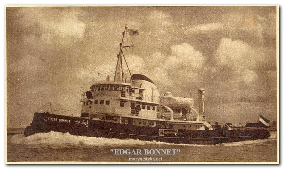 EDGAR BONNET - w swoim czasie najsilniejszy holownik na świecie ... EDGAR BONNET - a tug built by Smit & Zoon Scheepswerven, Kinderdijk, Holland, for the Suez Canal Authority, Port Said. Launched: 18 June 1953. Displacement: 841 tons (1473 tons full).