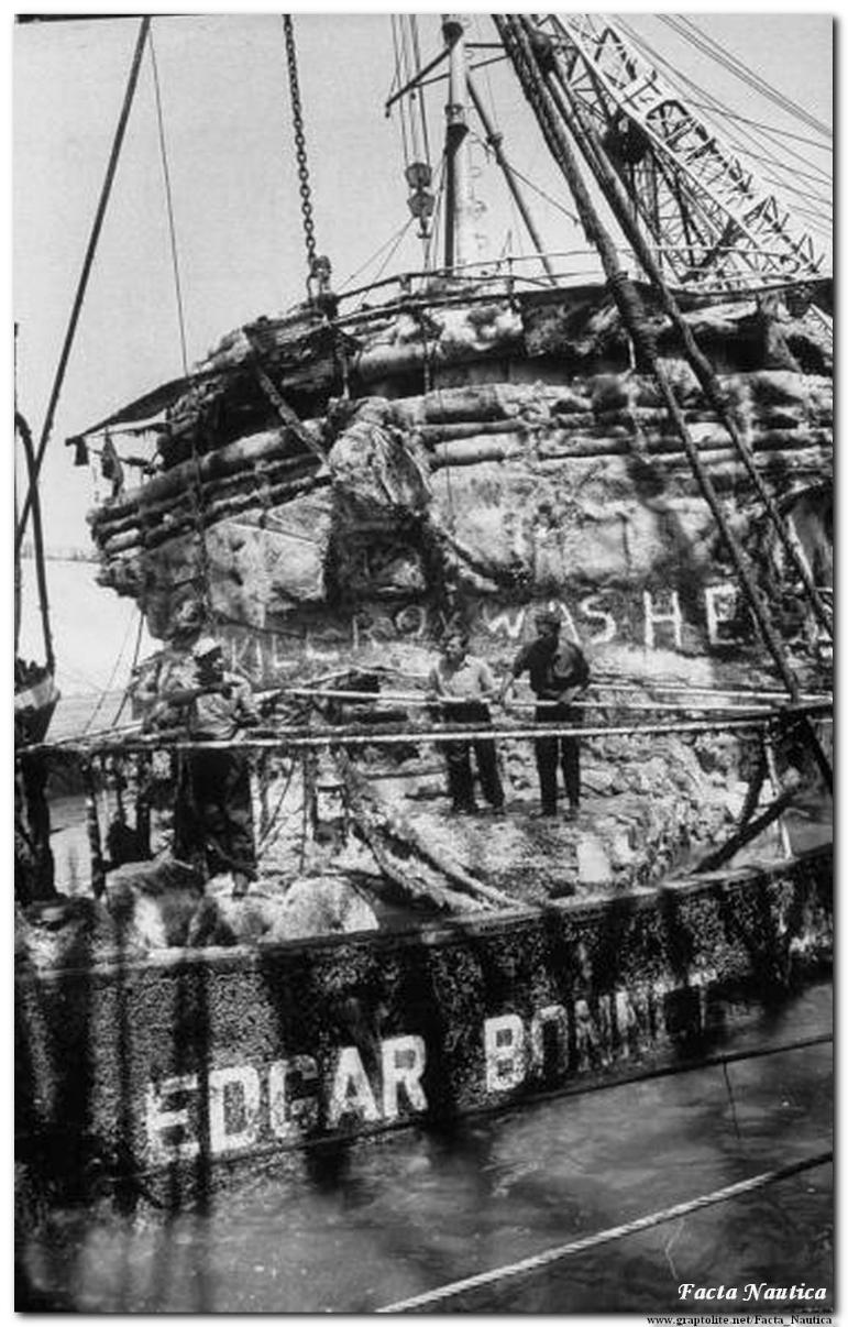 EDGAR BONNET w chwilę po podniesieniu z dna Kanału Sueskiego - 27 marca 1957 roku.