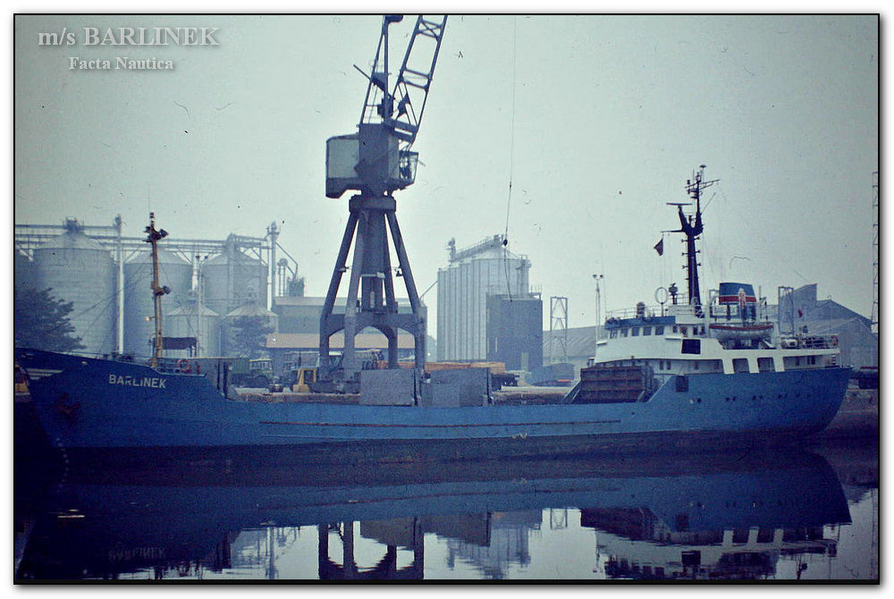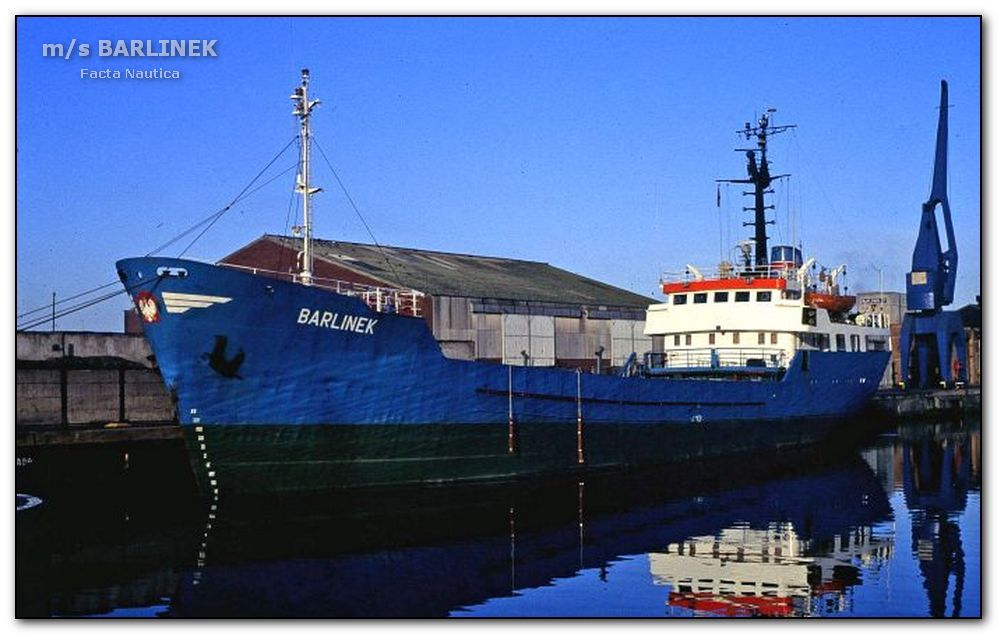 M/s BARLINEK, pierwszy statek dowodzony przez kapitana ż.w. Jacka Sobotę, wszedł do eksploatacji 30 czerwca 1973 r. Zwodowano go 11 listopada 1972 r. -