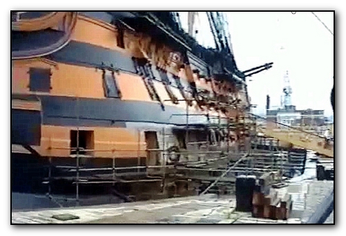 ----....-Zbudowano go z ponad 6000 dębów w 1860 roku. Kosztował 63173 funty, co odpowiada około 50 milionom dzisiejszych funtów. Z punktu widzenia dzisiejszych czasów jest to okręt niewielki mierzy raptem 85 metrów długości i wypiera około 4200 ton. Jak tam żyło 1000 ludzi załogi, jest wprost niewyobrażalne. Tylko kilka oryginalnych ze 104 dział jest na pokładzie. Resztę zdjęto. Część stoi na kei, a pozostałe w różnych muzeach. Po prostu armaty stanowiłyby zbyt wielki ciężar dla drewnianego kadłuba stojącego na kilblokach w suchym doku. Marynarze spali w hamakach. Każdy hamak ma 2 drewniane rozpórki. Ich długość była regulowana przepisami a posiadanie dłuższych niż regulaminowe było surowo karane. Ciasnota była ogromna. Aresztem był po prostu żelazny ring na międzypokładzie bateryjnym, do którego przykuwano aresztanta. Warunki życia były bardzo trudne. Międzypokłady były bardzo niskie. Starano się zminimalizować wysokość kadłuba ze względów statecznościowych.