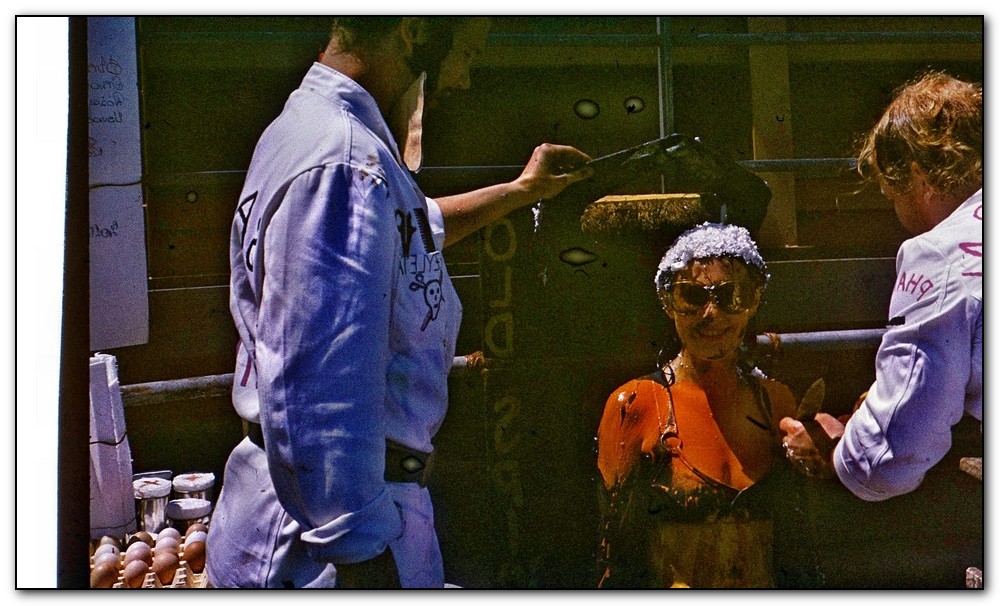 Na południku 180 różnica czasu w stosunku do UTC wynosi już równo dobę. I to trzeba dołożyć, aby być we właściwej strefie, W drodze z Kanady do Kanału Panamskiego załoga zorganizowała chrzest równikowy. W starannych. Żartowaliśmy sobie z naszych pań, że za friko dostały dzień dodatkowej młodości.
