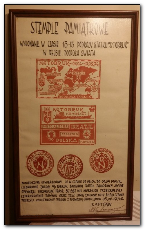 TOBRUK. Mój 4 letni wtedy syn chorował na poważną alergię. Rozdrapywane rany jątrzyły się i dzieciak cierpiał. Lekarze byli bezradni. Dermatolog, który go prowadziła poradziła mi, aby go zabrać nad ciepłe morze na przykład do Bułgarii. W 1974 roku tylko to było możliwe, ale ja zapytałem, co myśli o długim rejsie. Powiedziała, że to jeszcze lepiej. PŻM się przychylił i Zaokrętowałem na „Tobruk”, zabierając swoją rodzinę ze sobą, Oprócz nas, żonę na pokładzie miał jeszcze Starszy Mechanik i radiooficer, Andrzej Wąsiel, obecnie żyjący w Kanadzie.