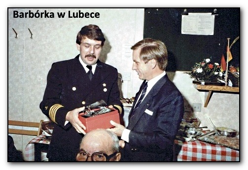 Agent zabrał ich do miasta, gdzie kupiono im eleganckie kelnerskie stroje. Po załogę przyjechał autokar i zabrano ich na wycieczkę i wieczorną imprezę, gdzieś w mieście, aby nie kręcili się po statku w czasie tej imprezy. Gości zjechało się około setki. Pod statkiem był parking, na którym stały same limuzyny klasy Premium. Był prezydent landu, do którego należały Lubeka, importerzy węgla, polski konsul, dyrekcja PŻM i inne VIPy. Na akordeonie przygrywał stary marynarz w typowym, marynarskim niemieckim stroju. Śpiewał też niemieckie pieśni marynarskie. Niemcy pili ostro. Podchodzili do mnie, aby wypić ze mną "sznapsa". Ze mną chodził steward, który mnie lał do kieliszka wodę. Ładnie bym wyglądał pijąc alkohol z każdym, to chciał się ze mną wtedy napić. Od burmistrza Lubeki dostałem piękną grafikę, z widokiem portu, która wisi mnie w domu do tej pory piękny szklany duży kufel z herbem Lubeki, pochodzący z galerii szkła artystycznego. Do kufla nalano mi piwo i musiałem je wypić duszkiem, jednym tchem. Dostałem gromkie owacje.