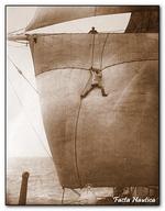 Łódź wzięliśmy na pokład przy pomocy rufowego bomu do ładowania zaopatrzenia na statek. Ze starej cumy zbudowaliśmy odpowiednie łoże, na którym postawiono zdobycz.