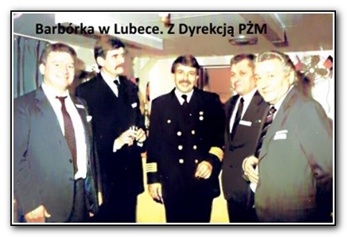 Kiedy pracowałem na lądzie zostałem wezwany do dyrekcji, gdzie powiedziano mi, że popłynę na statku KOPALNIA MYSŁOWICE, w krótki rejs do Lubeki, na parę dni, aby zorganizować tam przyjęcie barbórkowe dla kontrahentów PŻM i importerów polskiego węgla. Dyrekcja uznała, że kapitan dowodzący tym statkiem jest za mało reprezentacyjny. Dyrektor ds. Pracowniczych, były ochmistrz wygłosił w swoim gabinecie do mnie mowę. "Jest Pan znany ze swoich kontrowersyjnych wypowiedzi, proszę się od nich powstrzymać i godnie nas reprezentować." Odpowiedziałem, że ja mam to wyniesione z domu i być może to jemu trzeba mówić jak ma się zachować. Mnie nie.