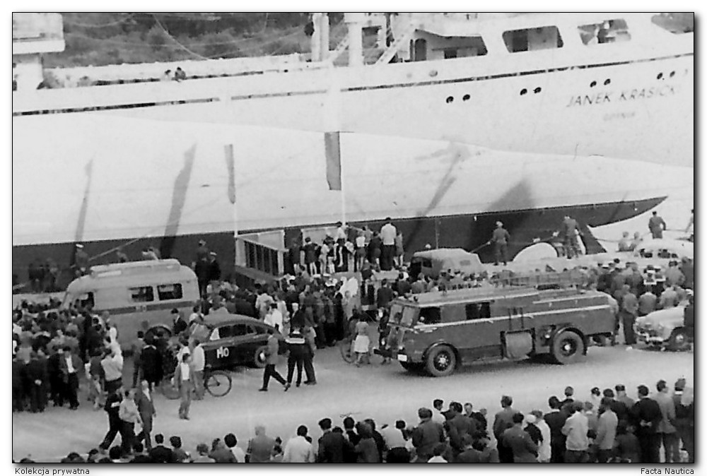 -------Autor fotografii twierdził, iż nie zauważył, aby ktokolwiek inny w pierwszych minutach po katastrofie robił zdjęcia. Mimo obecności dużej grupy dziennikarzy, w prasie PRL nie ukazała się jakakolwiek informacja na temat tragedii! Po dwóch miesiącach, w sierpniu 1960 miesięcznik MORZE zamieścił tylko jedno (jedno!) zdanie na temat szczecińskich obchodów Dni Morza. Nie mogę oprzeć się pokusie i zacytuję je w całości: "Osiagnięcia stoczniowców szczecińskich reprezentował dziesięciotysięcznik JANEK KRASICKI zacumowany przy Wałach Chrobrego". Ani słowa o wypadku, ani słowa o ofiarach. Świadek tamtych wydarzeń twierdził, że liczba osób, które wtedy poniosły śmierć wyniosła znacznie więcej niż dziesięć ...