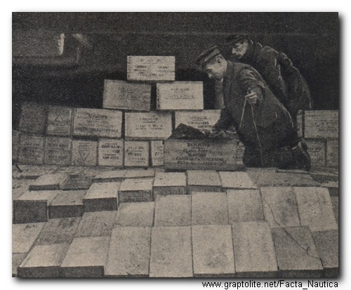 poświęcić okręt. Po porozumieniu się Admiralicyi z władzami portowymi, zadecydowano, iżby wysadzić okręt z całym ładunkiem na pełnem morzu, o ile można jak najdalej od miejsc uczęszczanych przez statki rybackie."