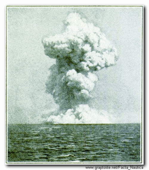 ---------"Na pokładzie holownika dokonano kilku zdjęć fotograficznych, które uchwyciły cztery fazy wybuchu. (...) Na pierwszej widzimy, wśród dwóch pióropuszów czarnego dymu, szczątki rozerwanego na drzazgi żaglowca, czego nie można było dostrzedz [pisownia oryginalna!] nawet przez doskonałą lunetę."
