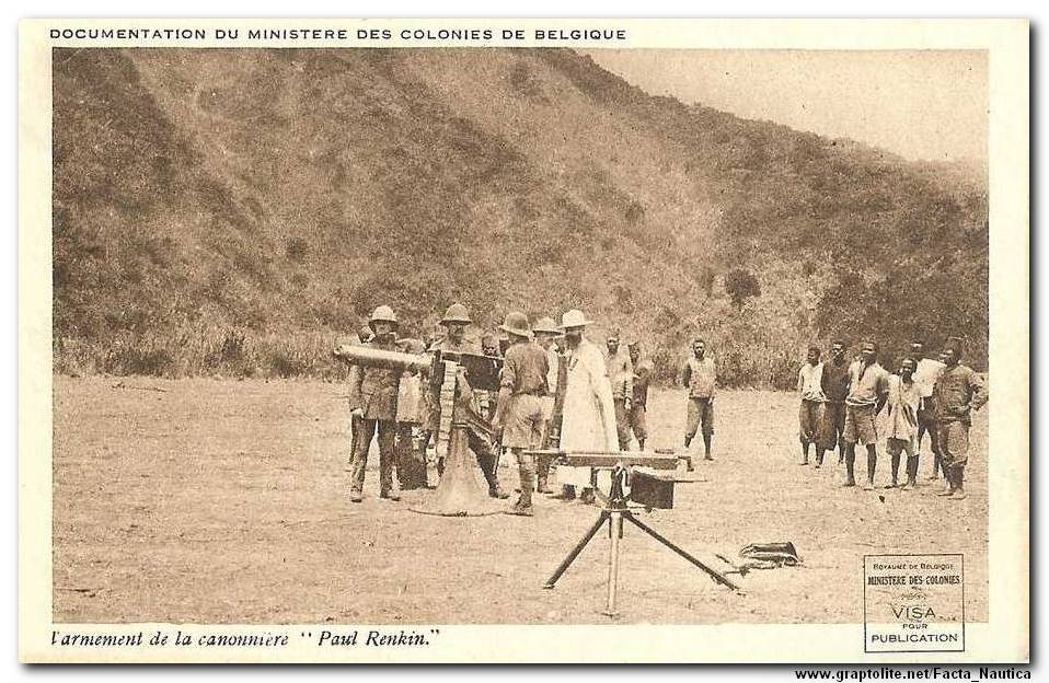---------Znane są natomiast z innych źródeł nieliczne fotografie kanonierki PAUL RENKIN. przed jej wejściem do służby. Jednostkę tę wybudowano we Francji w roku 1914, a próby przeprowadzono na Sekwanie. 26 listopada rozmontowana kanonierka wyruszyła z Marsylii na pokładzie statku zdążającego do Afryki przez Kanał Sueski. Ponowny montaż i powtórne wodowanie nastąpiło w Sake, nad jeziorem Kivu, dnia 19 marca 1916 roku.