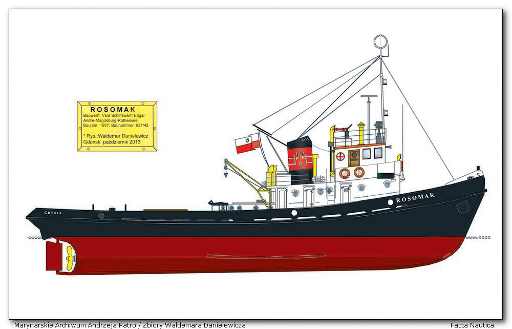 ROSOMAK Holownik wschodnioniemieckiego projektu 501 - IMO 5300261 Foto: Archiwum Andrzeja Patro/Zbiory Waldemara Danielewicza Opracowanie: Piotr Mierzejewski