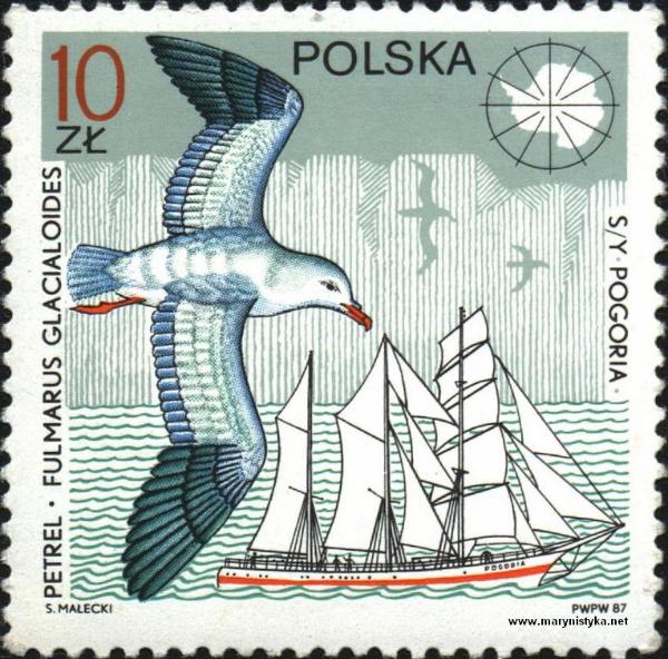 Barkentyna POGORIA na polskim znaczku pocztowym upamiętniającym dotarcie jej na wody antarktyczne.