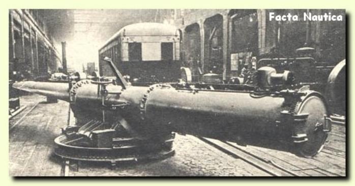 Pierwsza polska wyrzutnia torpedowa w hali produkcyjnej Warszawskiej Spółki Akcyjnej Budowy Parowozów. Fotografia z roku 1935.